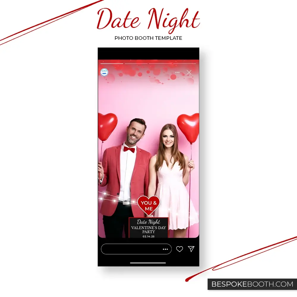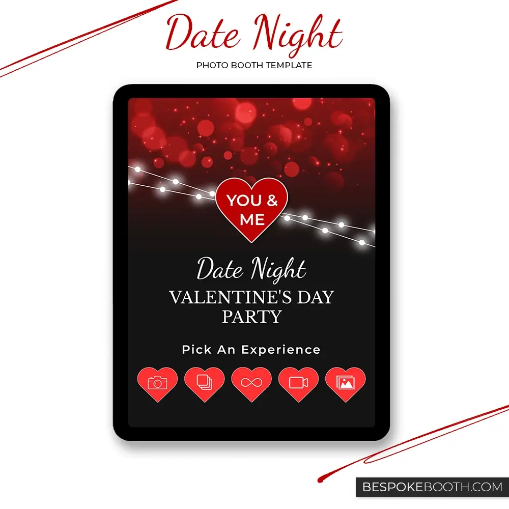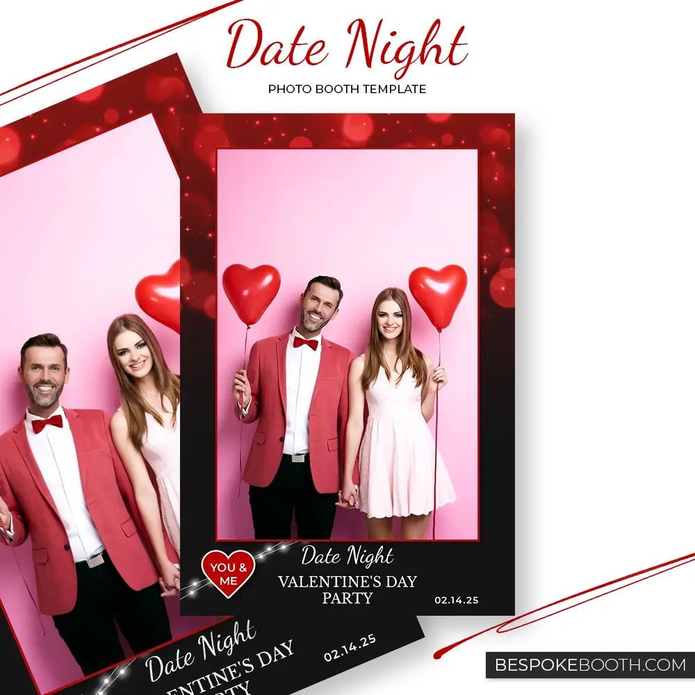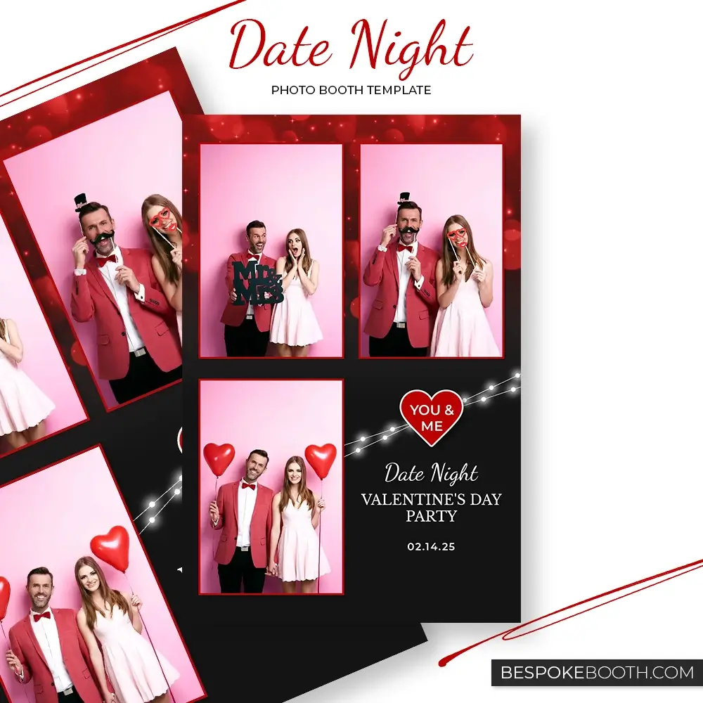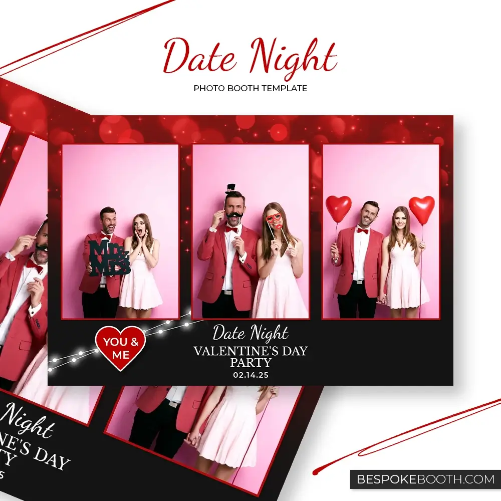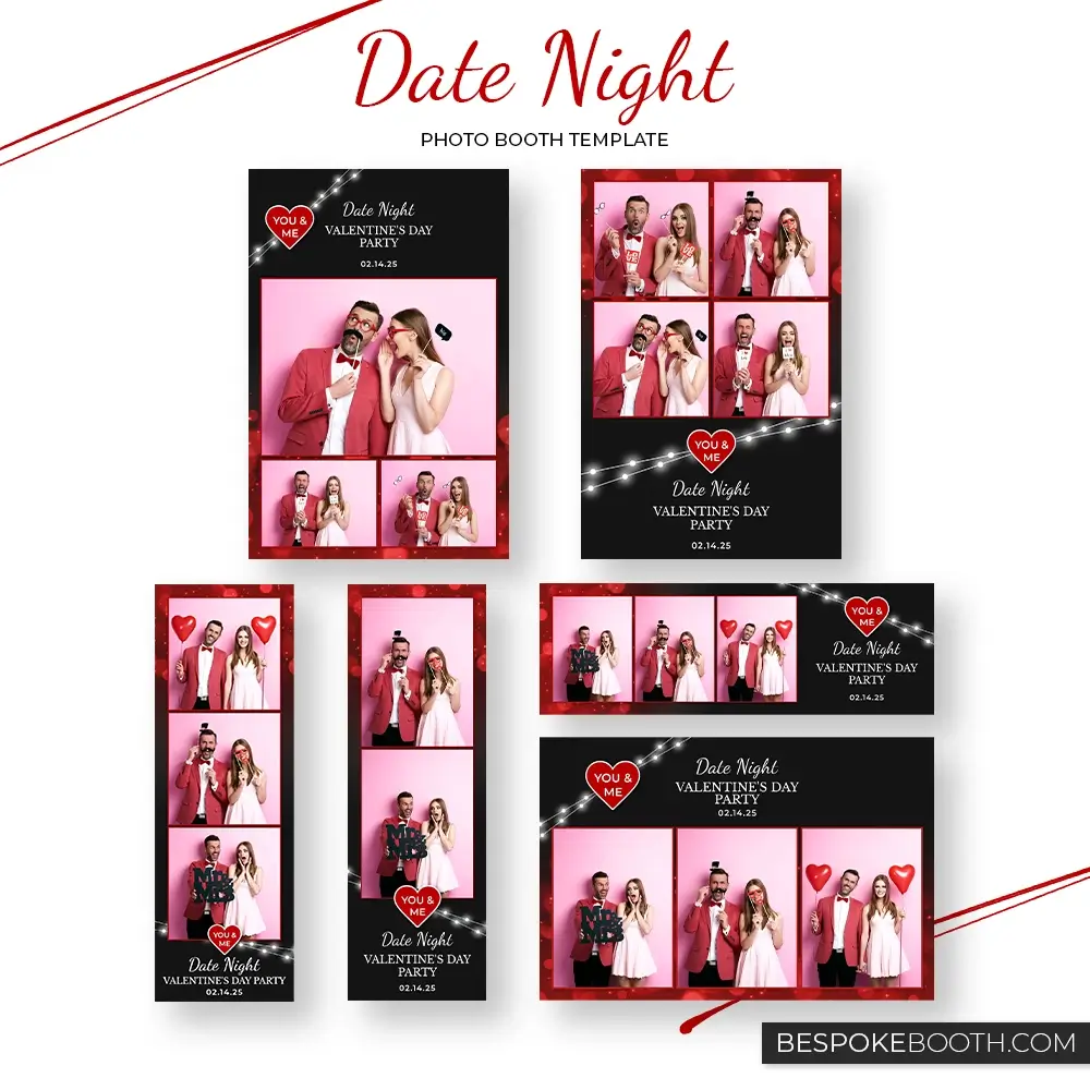 Date Night Valentine's day photo booth templates for Valentine's day celebrations and other romantic events including weddings