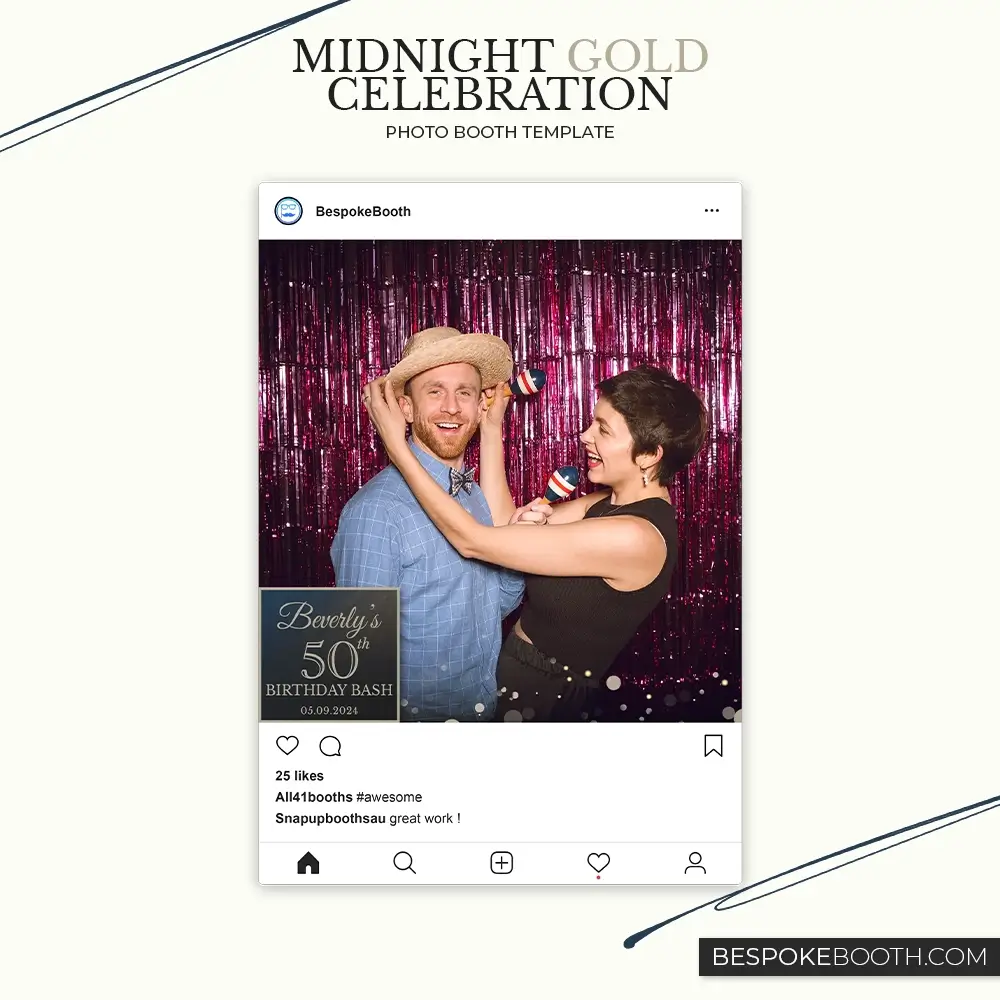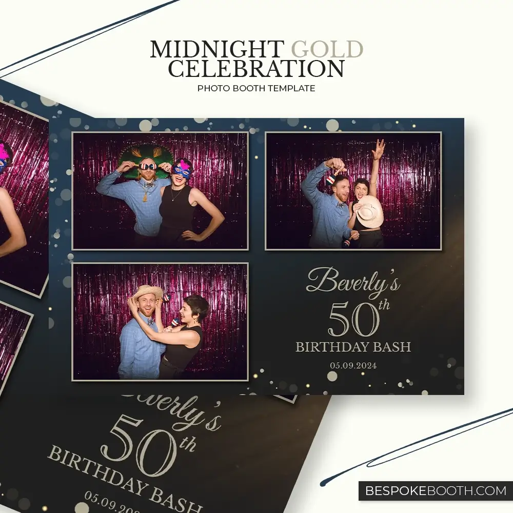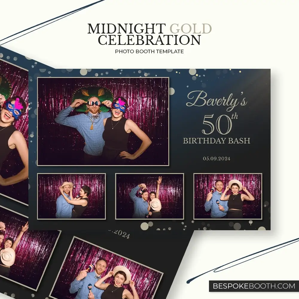 Midnight Gold Celebration photo booth templates for Birthdays, party's, celebrations, weddings and anniversary events.